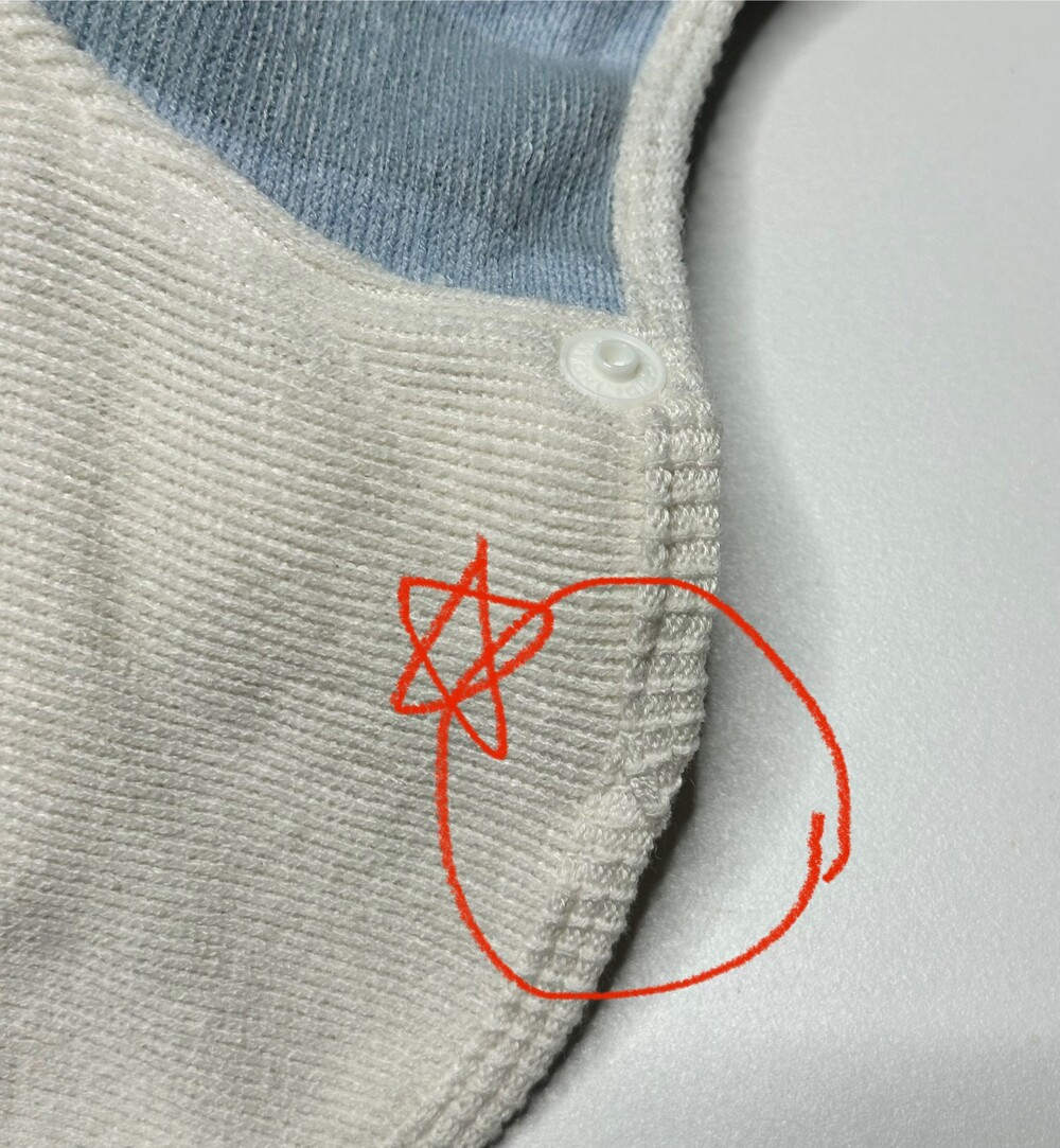 해당 부분은 제품 제작시 랍바 봉제의 시작, 마무리 지점으로,