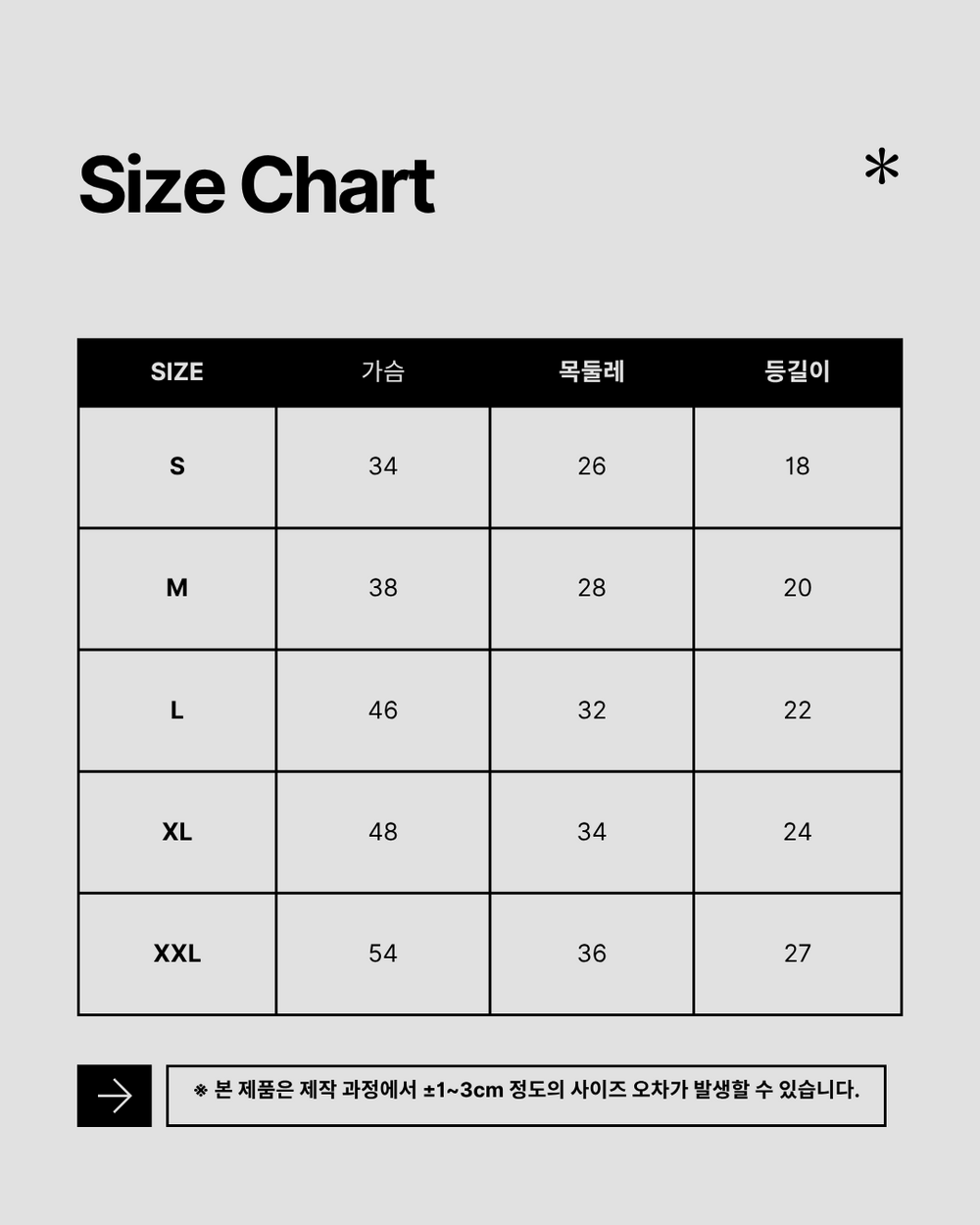 1-3CM (둘레기준) 정도의 오차가 있을수 있으며,