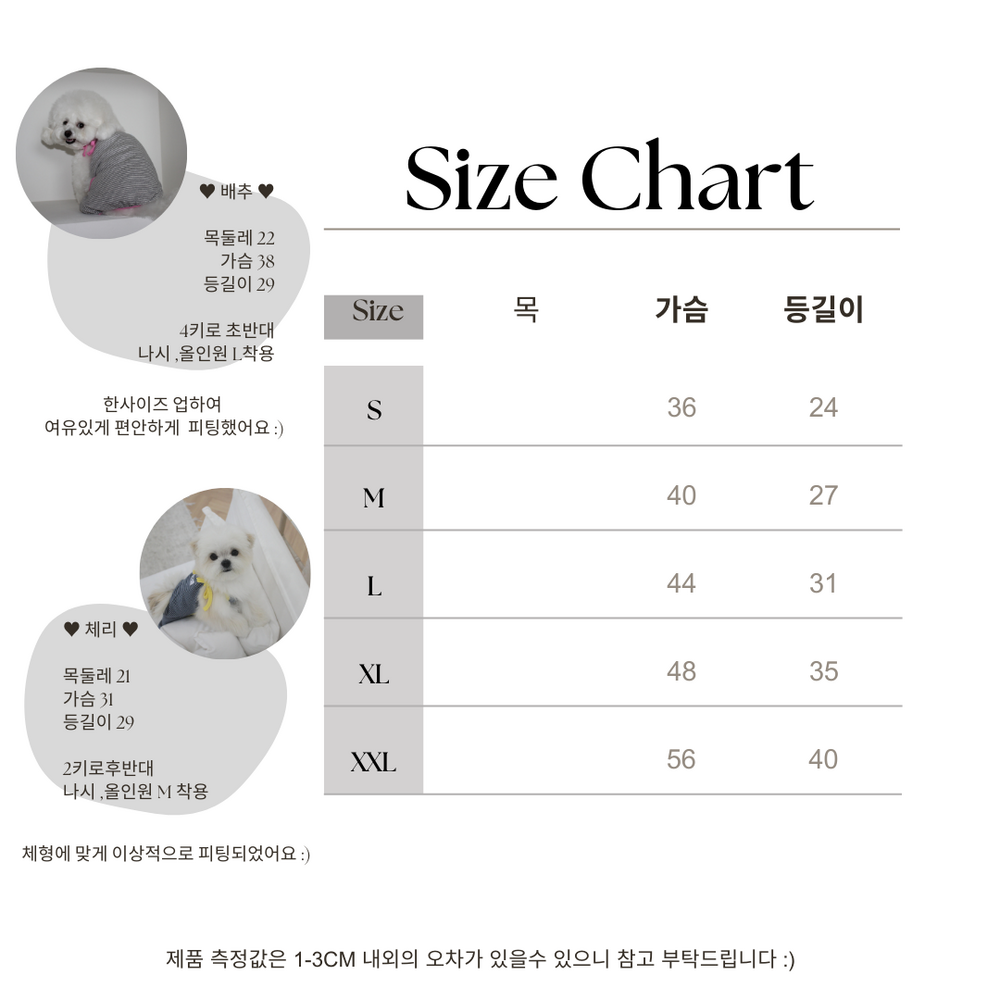 1-3CM (둘레기준) 정도의 오차가 있을수 있으며,